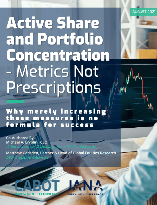 Spent time digesting a truly exceptional white paper this week courtesy of Michael Ervolini and Matthew Gadsden of Cabot Investment Technology and JANA respectively.